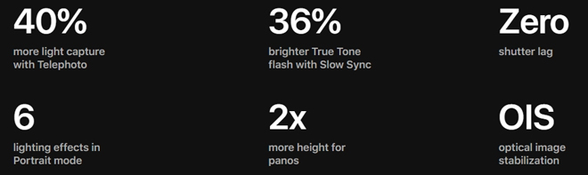 Nếu để ý kỹ thông số kỹ thuật, khẩu độ ống kính của camera tele 2x đã mở rộng từ f / 2.4 lên f / 2.0, thu lại nhiều ánh sáng hơn. Khẩu độ rộng hơn sẽ thu thêm được khoảng 40% ánh sáng khi chụp chân dung xóa phông. Nhờ vậy, ảnh chụp sẽ sáng và rõ hơn.