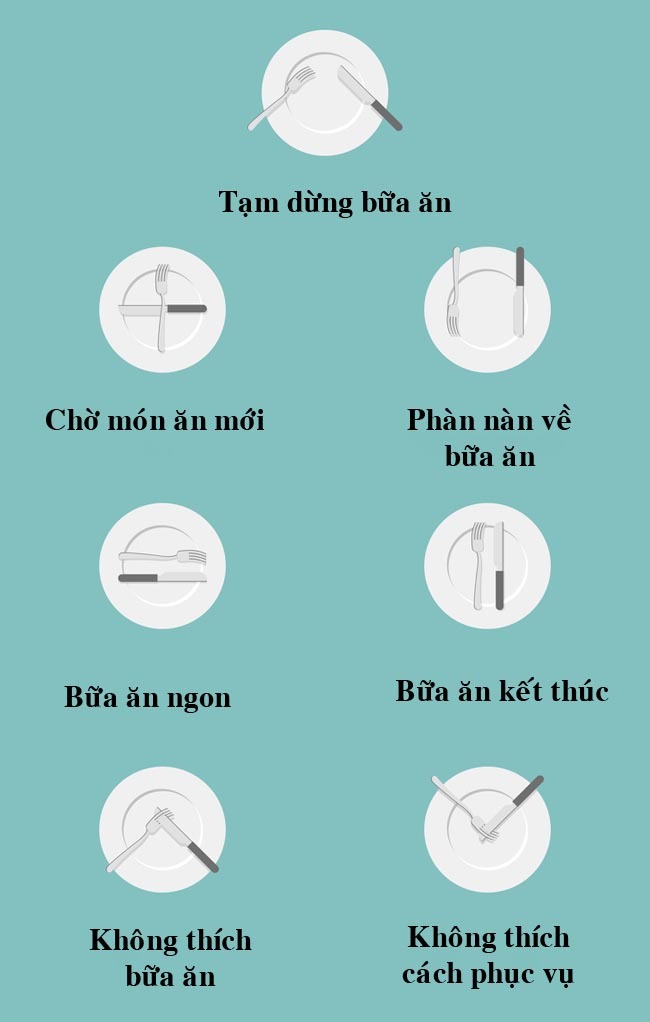 Trước khi đi ăn ở nhà hàng, tốt nhất là nên nhớ các quy tắc sử dụng dĩa và dao đúng cách. Việc này sẽ giúp cho người phục vụ hiểu được bạn đang muốn dùng bữa theo cách nào và đây cũng là phép lịch sự trên bàn ăn.