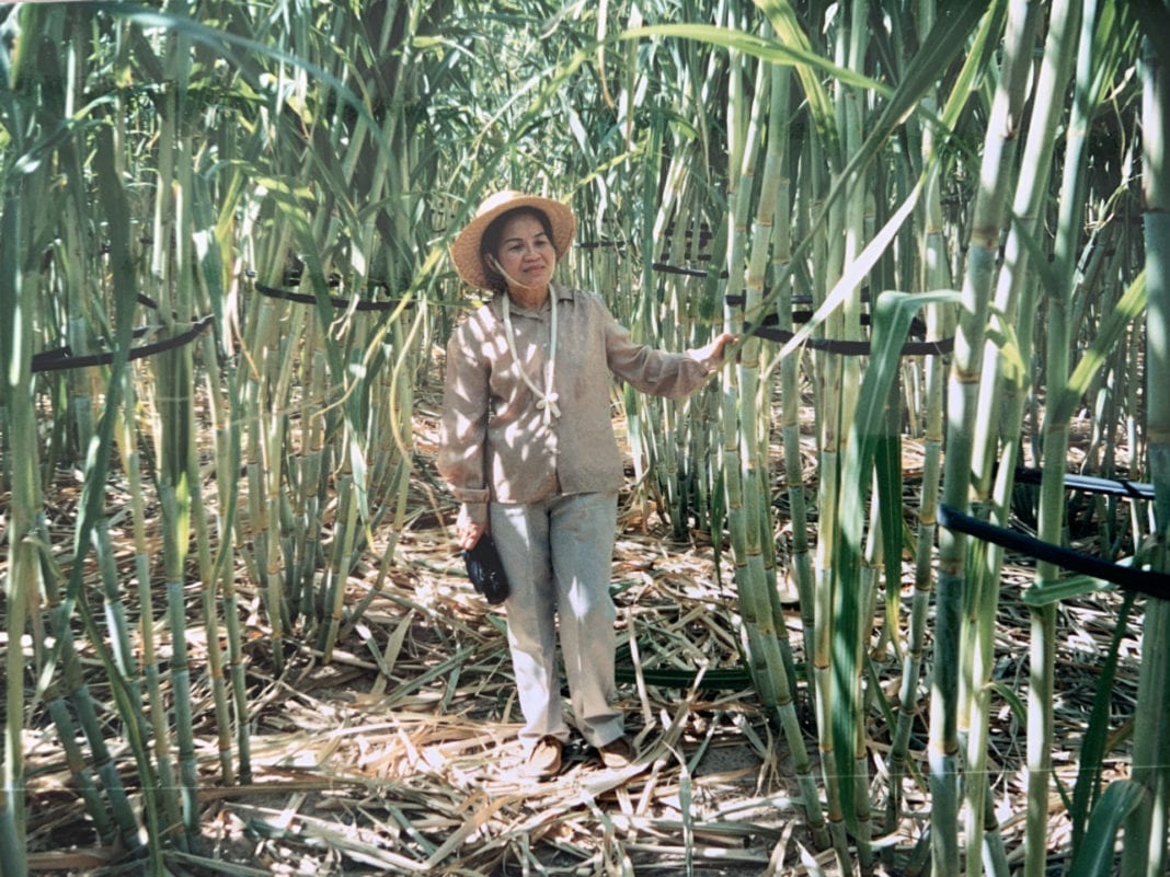 Bà Nguyễn Thị Quới bên ruộng mía những năm 1980. (Hình: Nguyễn Ngọc Ổn cung cấp)