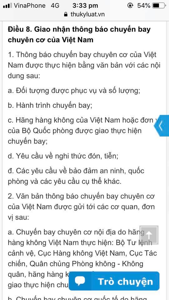 Điều 15 quy định rõ “đối tượng đặc biệt khác” quá giang “tứ trụ” tại điều 5 là “đoàn doanh nghiệp” hoặc “báo chí” đi cùng chuyến bay chuyên cơ.