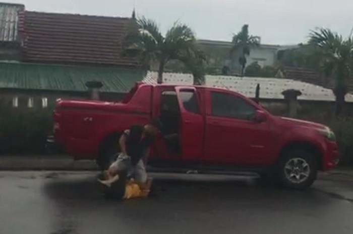 Hình ảnh trong đoạn clip được chia sẻ cho thấy, một người đàn ông nắm tóc rồi đánh một người phụ nữ cạnh chiếc ôtô bán tải ở sân bệnh viện. Mặc cho người phụ nữ khóc lóc van xin nhưng người đàn ông vẫn đánh tới tấp rồi tìm cách lôi vào trong xe.