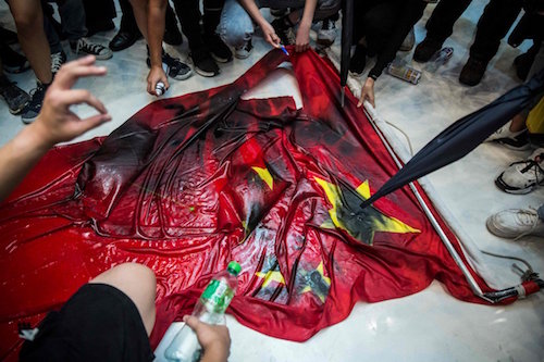 3- Dưới mắt một phần thế giới, Trung Quốc đang biến thành Chinazi (ảnh: người Hong Kong đốt cờ Trung Quốc – AFP)