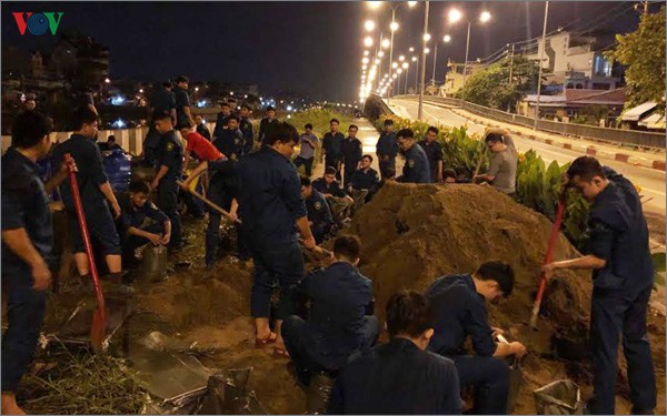 Lực lượng chức năng quận 8, TP HCM đã huy động hơn 150 dân quân, vận chuyển gần 10.000 bao cát để be bờ khắc phục sự cố. Đồng thời hỗ trợ các hộ dân xây tạm các vách tường gạch ngăn nước vào nhà, sớm ổn định lại cuộc sống.