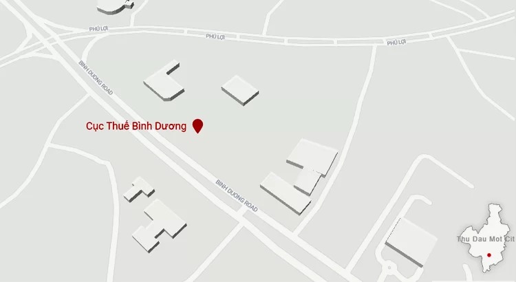 Cục thuế Bình Dương gồm 2 dãy nhà, cách nhau vài chục mét, nằm trong khuôn viên rộng hàng nghìn mét vuông, sát quốc lộ 13 (Đại lộ Bình Dương). Nơi đây là trung tâm của TP Thủ Dầu Một, xung quanh có nhiều nhà dân, trụ sở các cơ quan.