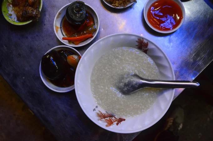 Các món ăn kèm như củ cải muối giòn, trứng bắc thảo, tôm rim chua ngọt, cá cơm... đều được bày trong những chén nhỏ, mỗi chén có giá khoảng 10.000 - 15.000 đồng. Quán mở cửa từ xế chiều đến 4h sáng hôm sau.