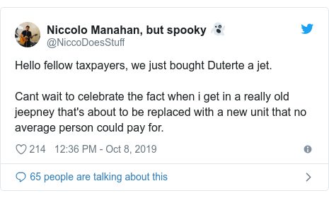 Hế nhô cả nhà, vậy là chúng ḿnh vừa mới mua một chiếc máy bay phản lực cho Duterte.