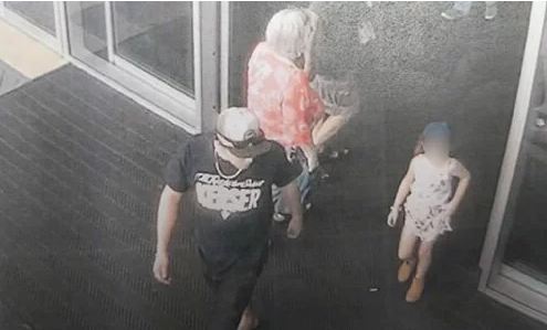 Hình ảnh Free (áo đen) dụ bé gái ra khỏi cửa hàng được camera an ninh ghi lại. Ảnh: News Corp.
