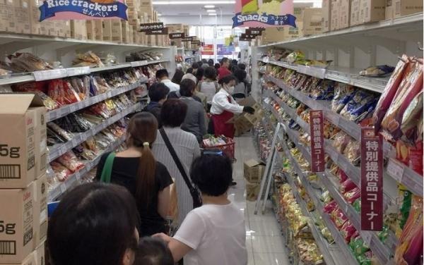 Người đân chen chúc mua hàng tại một siêu thị ở Yokohama.