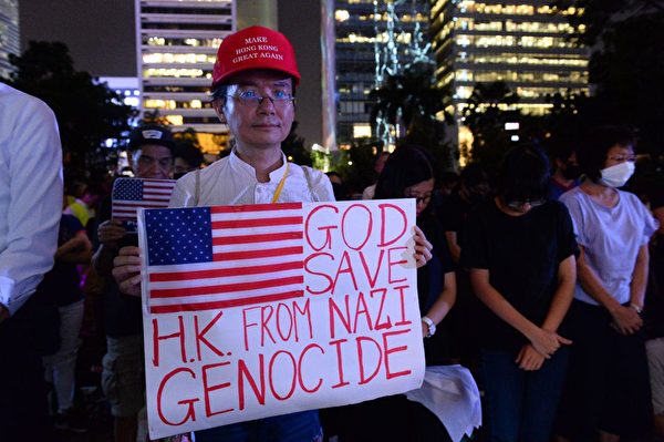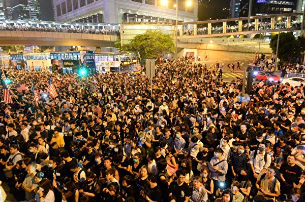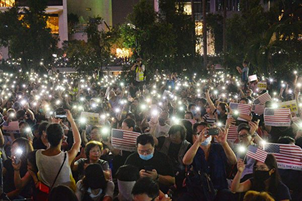 Vào lúc 7 giờ tối ngày 14/7 (giờ Hồng Kông) tại Công viên Chater, người dân Hồng Kông đã tổ chức hoạt động ủng hộ Mỹ xem xét Dự luật Nhân quyền và Dân chủ Hồng Kông. Khoảng 130.000 người đã tham gia hoạt động này. (Ảnh: Epoch Times)