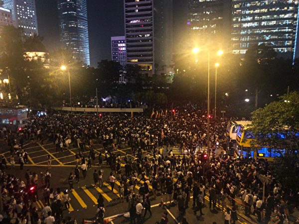 Người Hồng Kông tập trung trên đường Queensway tối ngày 14/10. (Ảnh: Epoch Times)