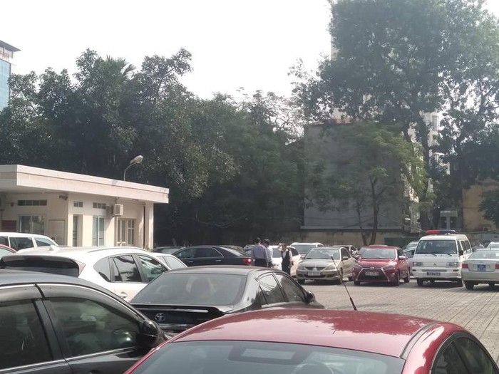 Cảnh tượng bên ngoài Bộ GD-ĐT sau khi xảy ra vụ việc đáng tiếc của Thứ trưởng Lê Hải An. Các cổng ra vào trụ sở Bộ đều có bảo vệ.