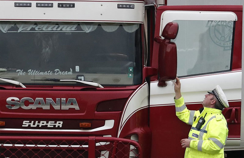 Thùng xe container xuất phát từ Bỉ, vượt eo biển vào Anh trước khi được một tài xế xe đầu kéo chở đi và phát hiện thảm kịch, khiến cảnh sát nhận định đây là một trong những vụ giết người lớn nhất trong lịch sử nước Anh, nhưng chưa công bố danh tính nạn nhân cũng như các giả thuyết liên quan đến vụ án. Tiếp tục xác minh những tình tiết bí ẩn liên quan lộ trình chiếc xe tải chở 39 người nghi chết cóng, cảnh sát Anh vừa tập kích 2 ngôi nhà liên quan nam tài xế trẻ tuổi.