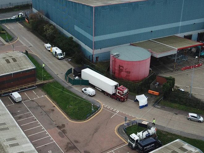 Cảnh sát Anh đang điều tra vụ 39 người tử vong trong xe tải theo hướng đây là nạn nhân của một vụ buôn người. Tuy nhiên, cộng đồng người Việt tại Anh lại nghi ngờ đây là một vụ nhập cảnh "chui" để được lao động tại nước này. Ảnh: Splash News.