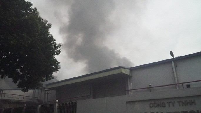 Một công ty nằm trong Khu chế Xuất Linh Trung 1 (quận Thủ Đức, TP HCM) bốc cháy.