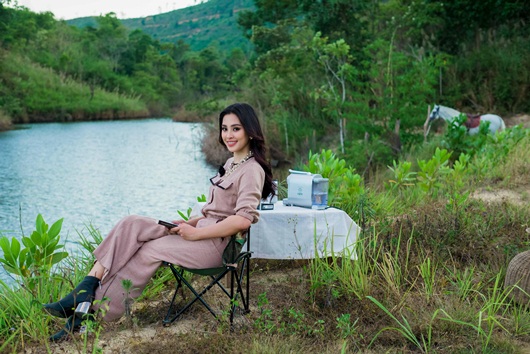 “Dù rất vất vả để chụp được bộ hình nhưng Vy rất vui vì được trải nghiệm trọn vẹn vùng đất đậm chất nắng gió Tây Nguyên, cảnh quan thơ mộng, bí ẩn và hoang sơ. Vy được đi trên những bãi cát trắng mịn, tận hưởng giây phút ngồi câu cá giữa không gian của núi rừng, thư giãn trong căn nhà gỗ, di chuyển và ngồi uống cà phê trong chiếc xe đặc biệt Mercedes G55”, Tiểu Vy nói thêm.