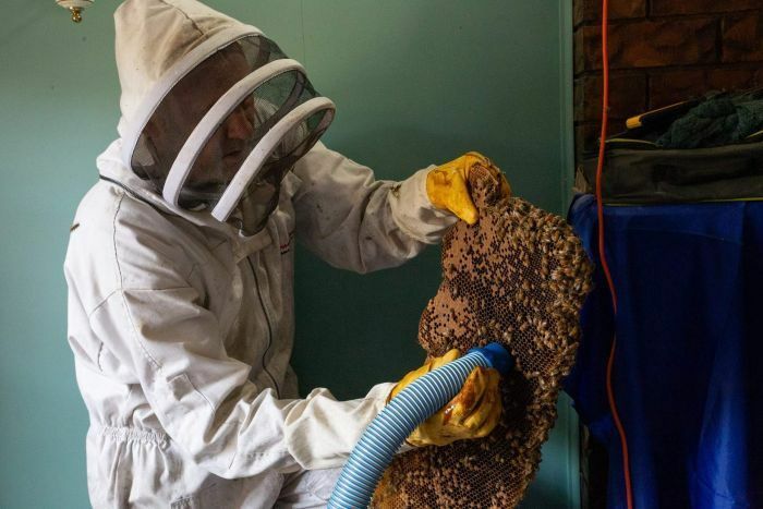 Paul hút ong vào nơi thùng an toàn để mang chúng đi nơi ở mới. Ảnh: News.
