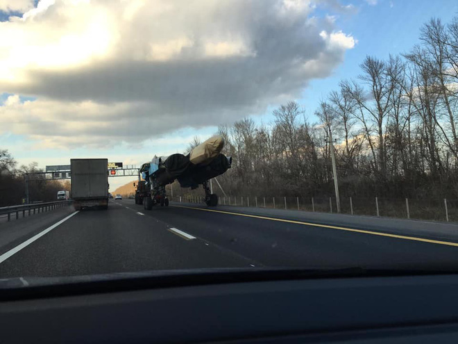 Nhiều lái xe đã tình cờ ghi hình được phương thức vận chuyển độc nhất vô nhị chiếc tiêm kích Su-34 mệnh danh là "xe tăng bay" của Nga trên một tuyến đường gần thành phố Voronezhe.
