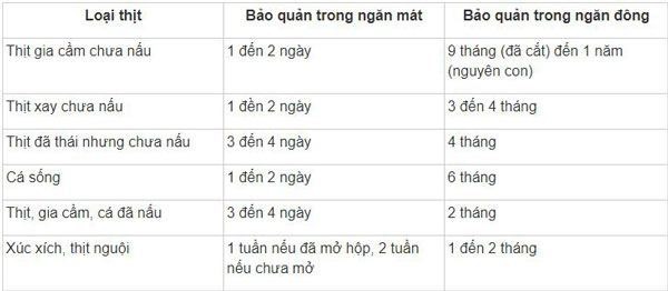 Thời gian bảo quản thịt