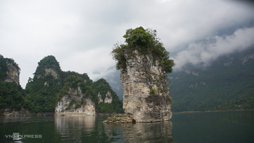 Để khám phá, du khách bắt đầu hành trình từ bến thuyền ở xã Thượng Lâm, huyện Lâm Bình. Rẽ làn nước trong xanh như ngọc, con thuyền vỏ sắt sẽ đưa bạn dạo quanh các đảo nổi. Nổi tiếng nhất phải kể đến thắng cảnh Cọc Vài, trong tiếng Tày nghĩa là cọc buộc trâu. Đây là cột đá tự nhiên, cao hàng chục mét so với mặt nước hồ cuối tháng 10. Trên mỏm đá vẫn có cây cối xanh tốt.