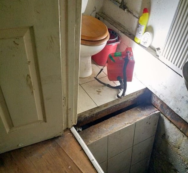Được cho là giống hệt cảnh trong bộ phim “The Great Escape” thời Thế chiến thứ hai, nhóm tội phạm đã làm hầm từ sàn của phòng vệ sinh và xây một cánh cửa phủ gạch lát nền để che giấu lối đi bí mật.