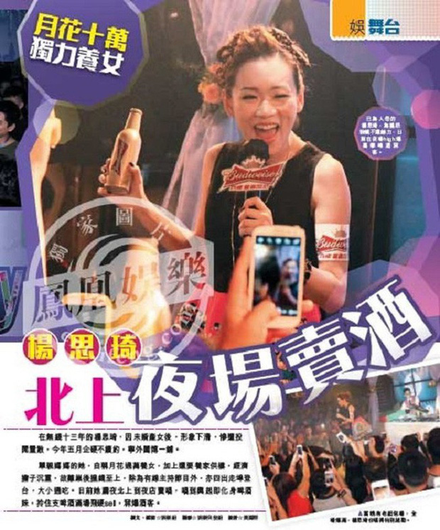 Dương Tư Kỳ quảng cáo, bán bia kiếm tiền nuôi con.