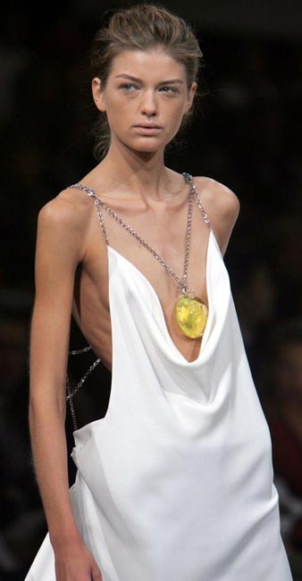 Người mẫu Ana Carolina Reston từng là nàng thơ của Dior và Armani chia sẻ thực đơn ăn kiêng khắc nghiệt chỉ với 1 quả táo, 1 quả cà chua và uống nước. Kết quả cô đã bị mắc chứng bệnh rối loạn ăn uống và ra đi ở tuổi 21. Làng mốt cũng bàng hoàng trước sự ra đi của người mẫu Luisel Ramos ngay trên sàn diễn vì cô chỉ ăn rau diếp và uống nước để giảm cân. Cha cô nói thêm, hơn 1 tuần trước khi buổi trình diễn diễn ra, cô đã không ăn bất cứ thứ gì. Để trở thành người mẫu, cái giá phải trả của các cô gái này quá đắt, đó là cả mạng sống của mình.