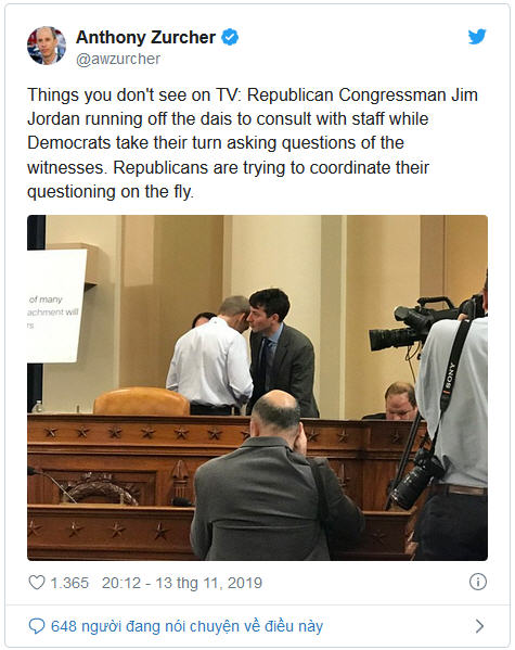 "Ông ta chuẩn bị hàng giờ để đến đây điều trần. Rồi đột nhiên, voila, ông bỗng nhiên nhận được thông báo từ một nhân viên kể với ông ta về một điều gì đó?" Dân biểu Cộng hòa Mark Meadows nói với các phóng viên bên ngoài phòng điều trần của ủy ban.