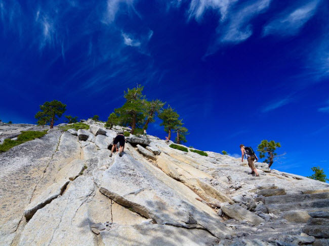 Hành trình chinh phục kỳ quan Half Dome trong vườn quốc gia Yosemite ở bang California có thể khiến du khách nguy hiểm tới tính mạng. Từ trên đỉnh khối đá khổng lồ này, bạn có thể chiêm ngưỡng toàn cảnh thiên nhiên ở đây.