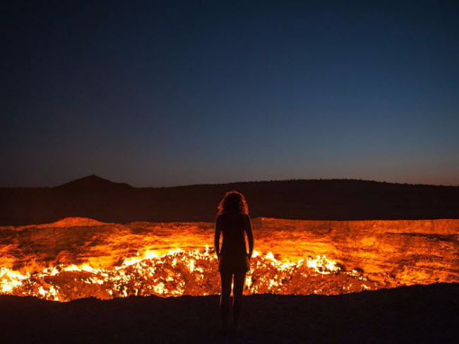 Hố gas khổng lồ Darvaza (hay Cổng địa ngục) là một trong những điểm du lịch nổi tiếng nhất Turkmenistan. Lửa dưới hố cháy liên tục cho đến nay sau khi mũi khoan thăm dò dầu mỏ trúng vào bể khí tự nhiên năm 1971.