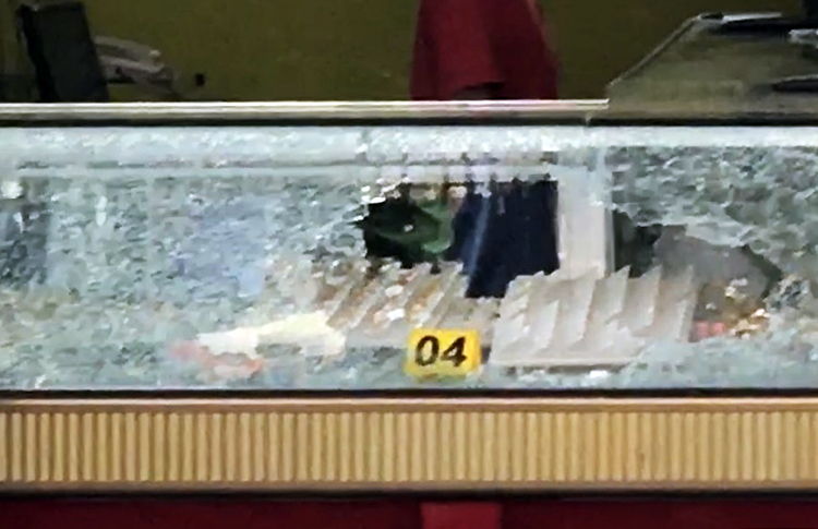 Tủ kính bị cướp đập vỡ. Ảnh: Quốc Thắng.