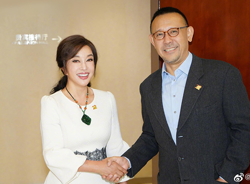 Lưu Hiểu Khánh và Khương Văn tái ngộ. Ảnh: Weibo.