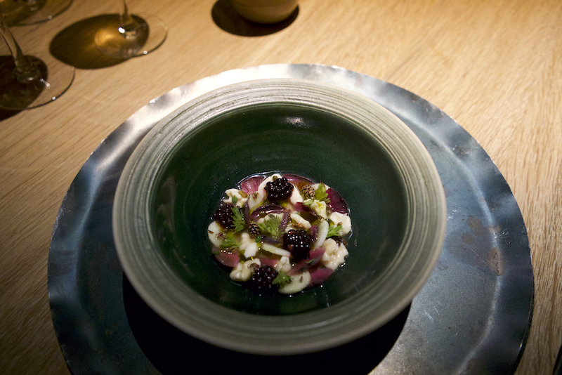 Món đầu tiên là súp nấm, nhưng bạn sẽ không tìm thấy nấm đâu cả ngoài một đống rêu và một cái nón thông bên trên. Phục vụ sẽ giải thích rêu và nón thông không ăn được, bên dưới mới là món súp nấm.