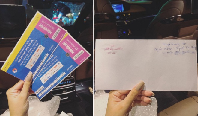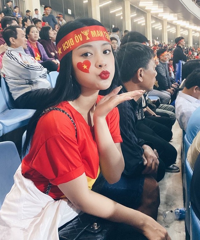 Người đẹp này là thủ khoa nhạc viện Nguyễn Thu Hằng. Cô là một cổ động viên bóng đá chân chính và thường xuyên góp mặt trong những trận đấu của đội tuyển Việt Nam. Mới đây, cô đã khoe được chính Quang Hải tặng vé vào sân.