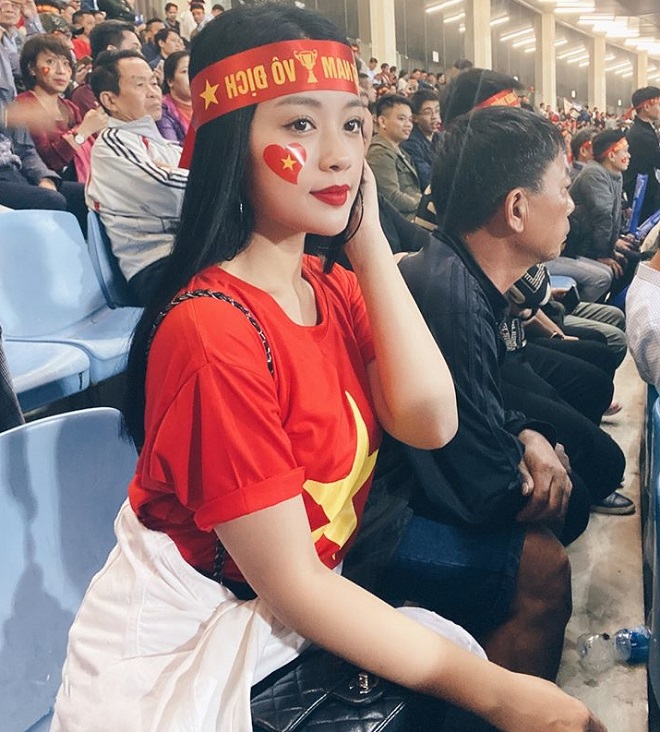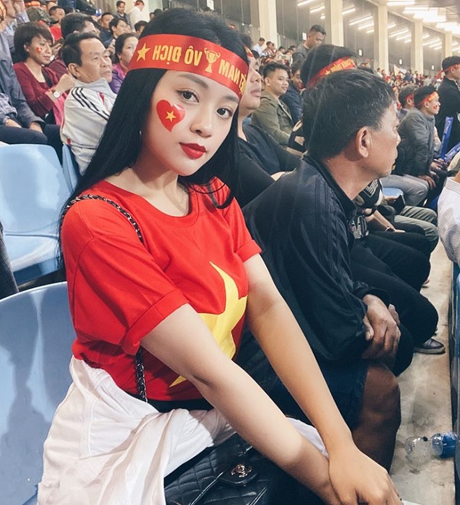 Thu Hằng từng rất nhiều lần đến sân cổ vũ Quang Hải và ĐT Việt Nam