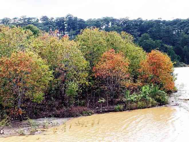 Những bạn trẻ thích phiêu lưu mạo hiểm thường thuê thuyền lênh đênh trên hồ Tuyền Lâm rồi cập bến rừng sâu để khám phá quần thể phong khoảng 20 cây đang thay “áo”.