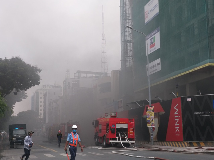 Chiều 23-11, hiện trường đám cháy công trình xây dựng đang thi công ở số 89 đường Nguyễn Bỉnh Khiêm (phường Đa Kao, quận 1, TP HCM) vẫn được phong tỏa phục vụ công tác khám nghiệm, điều tra nguyên nhân vụ cháy.