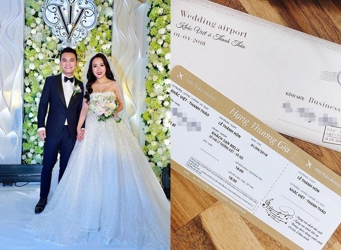 Tấm thiệp mời của ca sĩ, nhạc sĩ Khắc Việt và DJ Thanh Thảo được thiết kế giống một tấm vé máy bay hạng sang. Tên của hăng bay là Việt Thảo và tất cả khách đều nhận vé hạng thương gia. Trong tấm thiệp nêu rơ hai yêu cầu đối với khách mời là đến trước 30 phút và xuất tŕnh thiệp mời để nhập tiệc.