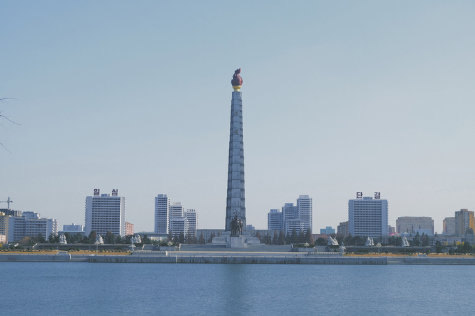 Tháp Juche, một trong những kiến trúc nổi tiếng ở Bình Nhưỡng. Khi đi qua đây, anh Phong nhớ đã thấy hình ảnh ngọn tháp nhiều lần trên các trang mạng khi tìm hiểu về Triều Tiên. Tháp Juche được xây dựng vào năm 1982, để mừng sinh nhật lần thứ 70 của nhà lãnh đạo Kim Il-sung. Kiến trúc này được tạo thành từ 25.550 khối đá granit - mỗi khối đá đại diện cho mỗi ngày ông Kim tồn tại trên cuộc đời đến năm 70 tuổi.