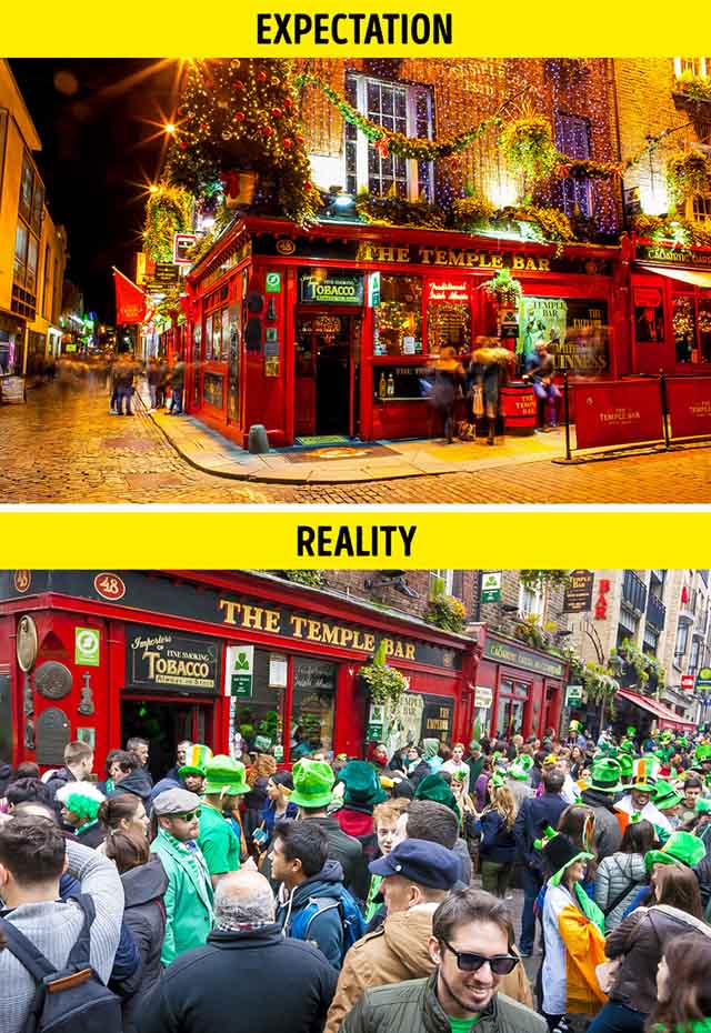 Người ta nói rằng Temple Bar là một nơi phải đến khi đến Dublin. Vào buổi tối, luôn có hàng dài dòng người xếp hàng chờ đợi vào quán bar. Quán bar này rất đông đến nỗi nhân viên không thể dọn dẹp kịp và nhận oder đồ uống.