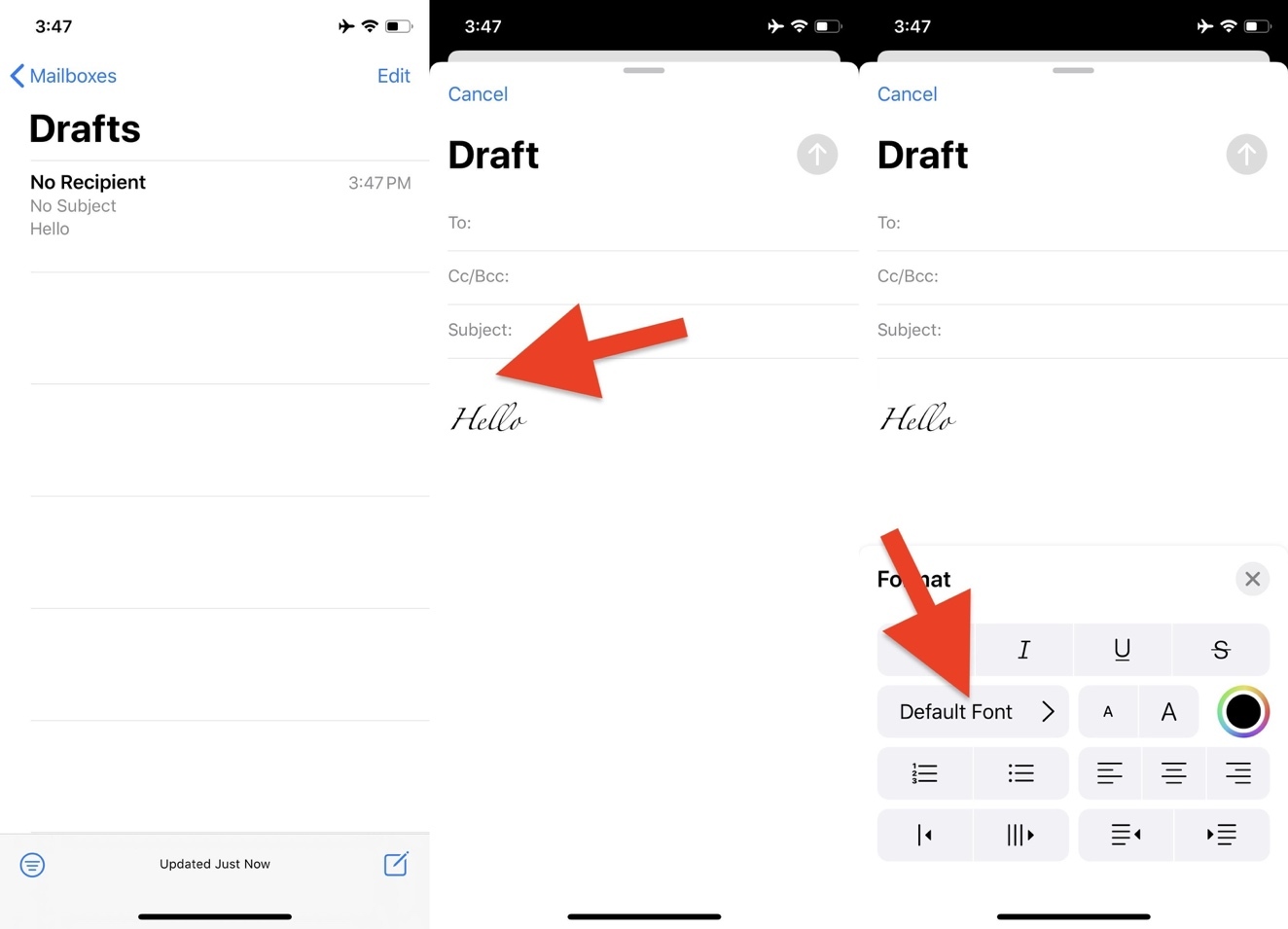 Old  Default Cách khôi phục phông chữ mặc định khi soạn email trên iOS 13