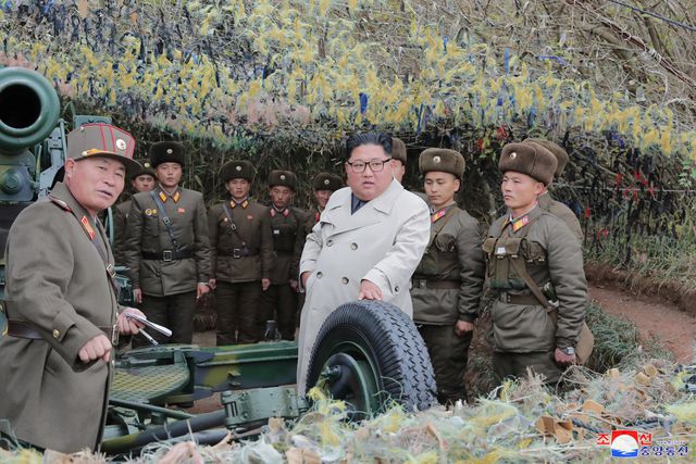 Ông Kim Jong-un thăm một cơ sở quân sự trên đảo Changrin ngày 25/11 (Ảnh: Yonhap)