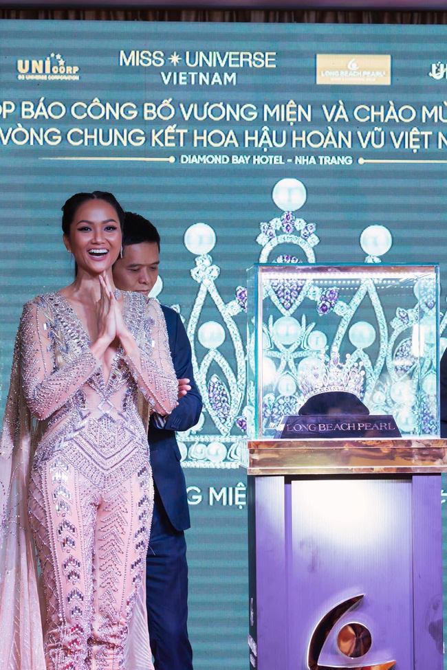 Xuất hiện tại sự kiện công bố vương miện của Hoa hậu Hoàn vũ 2019, Hoa hậu H'Hen Niê khoe dáng trong một thiết kế jumpsuit xuyên thấu ôm sát tôn trọn thân hình vệ nữ với những đường cong nuột nà của mình. Thiết kế là một sáng tạo của NTK Nguyễn Đạt.