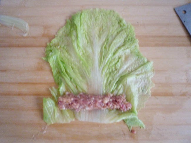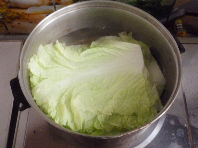 Sau khi rửa lá bắp cải, nhúng vào nước sôi 1 lượt.