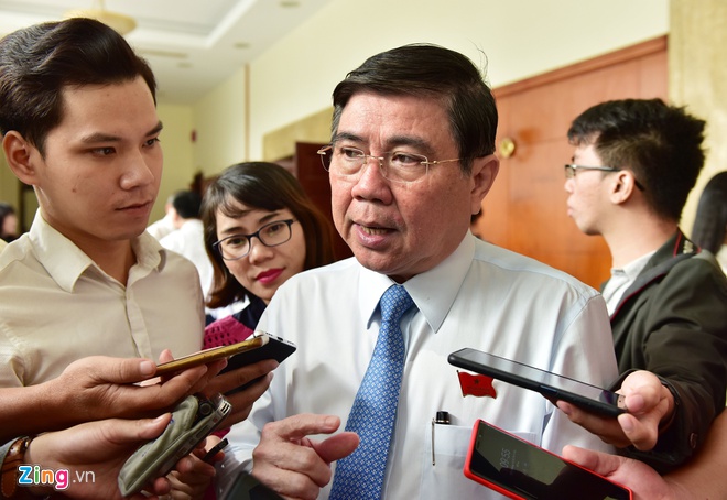 Chủ tịch UND TP.HCM Nguyễn Thành Phong trao đổi bên lề kỳ họp HĐND. Ảnh: Lê Quân.