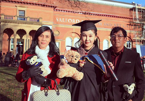 Lê Âu Ngân Anh rạng rỡ trong ngày được trao bằng thạc sĩ loại ưu tại Đại học Salford, thành phố Manchester, Anh Quốc