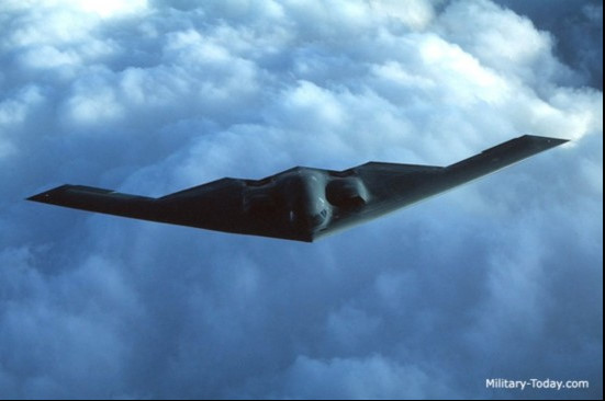 B-2 Spirit là máy bay ném bom chiến lược do tập đoàn Northrop Grumman phát triển từ những năm 1980 nhằm đối phó với Liên Xô. B-2 Spirit có khả năng oanh tạc mục tiêu bằng cả bom thông thường và bom hạt nhân. Điểm đáng sợ của B-2 chính là khả năng tàng hình, cho phép máy bay này thâm nhập mọi hệ thống phòng không tinh vi và dày đặc của đối phương. Máy bay ném bom chiến lược này có kiểu dáng như một con dơi khổng lồ, có thể mang tới 23 tấn vũ khí. Ảnh: People.com.cn.
