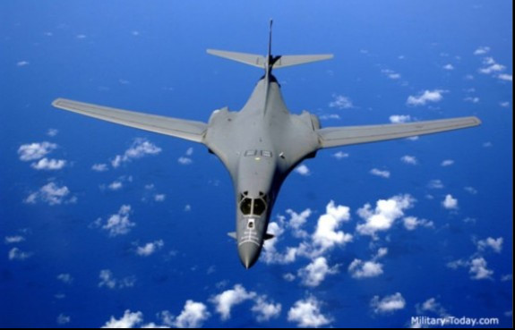 B-1B Lancer là máy bay ném bom chiến lược của Không quân Mỹ, có thể bay với tốc độ 1.330 km/h trong phạm vi 12.000 km. B-1B Lancer có khả năng mang theo 56,7 tấn bom. Với khả năng mang lượng vũ khí lớn như vậy, B-1B Lancer trở thành phương tiện không thể thay thế trong các hoạt động chiến sự quy mô lớn. Ảnh: People.com.cn.