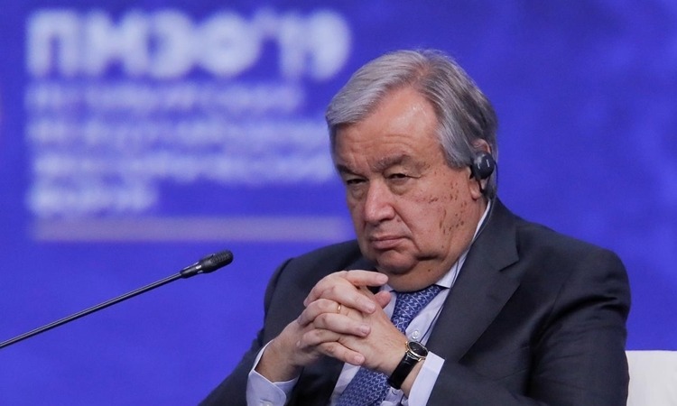 Tổng thư ký Liên Hợp Quốc Antonio Guterres tham dự phiên họp tại St. Petersburg, Nga, ngày 7/6. Ảnh: Reuters.