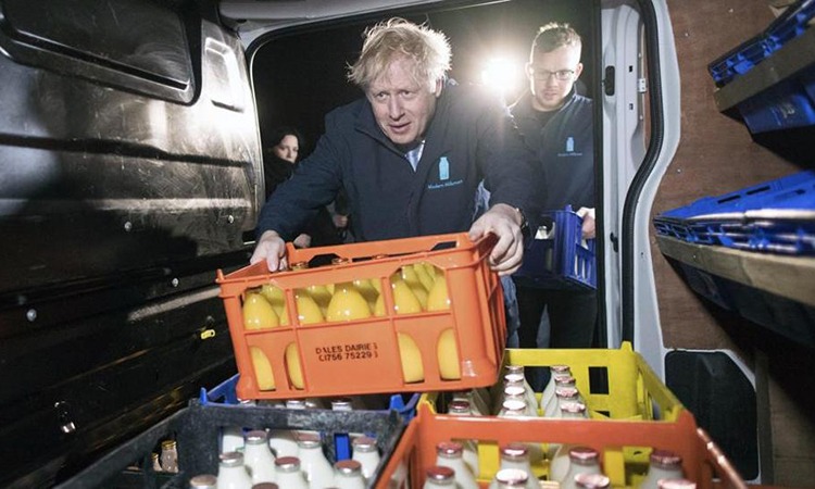 Thủ tướng Anh Boris Johnson đi giao sữa ở Leads, hạt Tây Yorkshire hôm 11/12. Ảnh: AP.