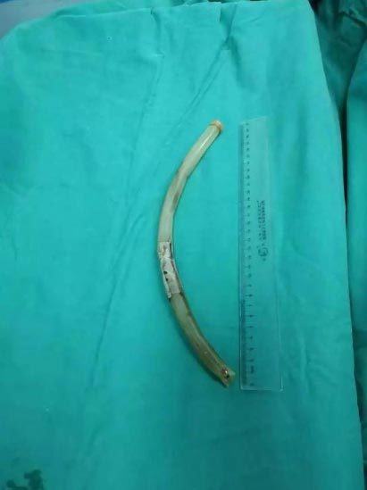 Ống nhựa được lấy ra khỏi cơ thể Lu. Ảnh: Odd News